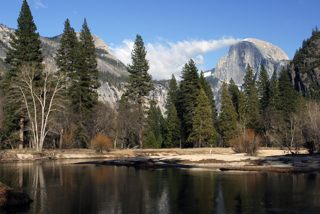 Half Dome and the Merced river in Yosemite Valley, Yosemtie National Park.