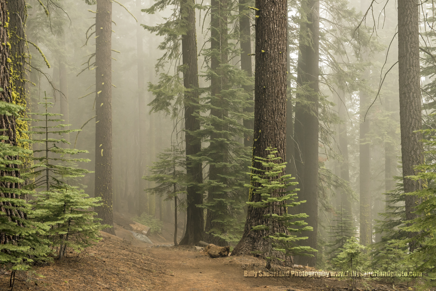 They opened Glacier Point on a Friday at noon, and that following Monday I headed up to check it out. Of course Yosemite Valley was completely full of clouds, so the view from the top was nothing but white, those shots coming soon. However while I was waiting out the clouds I hiked down Four Mile Trail a ways. The clouds and the mist were saturating the trees and the upper end of the trail. It added this great atmosphere as you could see.