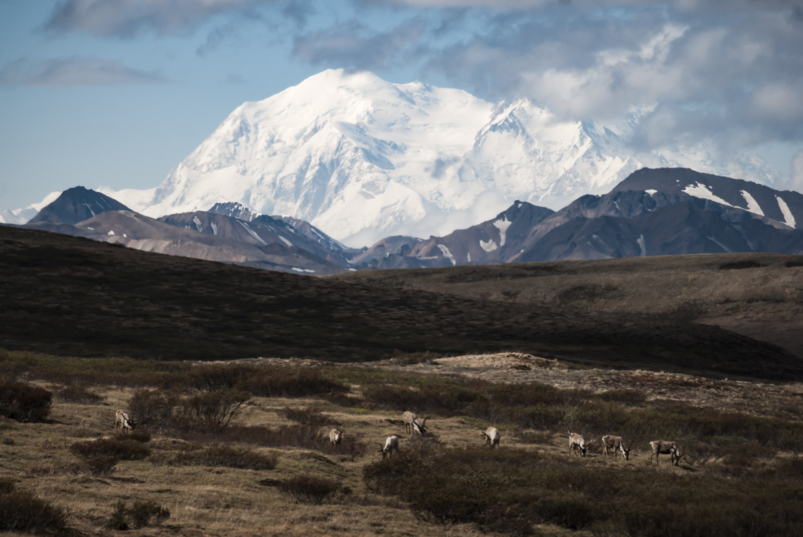 Denali is sometimes referred to as an 20% mountain, since its only visible 20% of the time, the rest of the time its usually shrouded in clouds. Thats why I was so excited to get this of the not only Denali but of caribou as well, in the same frame no doubt. After getting what I could of this seen, I began to review them on the screen on the back of my camera like a chimp. While scrolling through them I began to wish I could have gotten closer and a bit of a different angle. None the less I am relatively happen with this shot, mainly due to the subject matter.