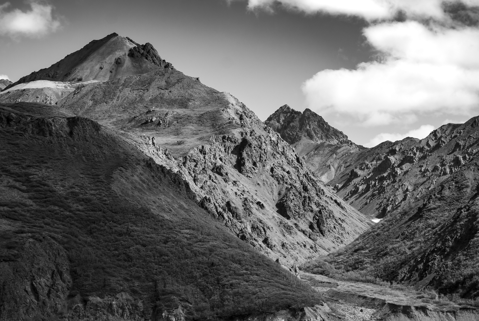 This image of mountains and cliffs rising above the Toklat River drainage in Denali National Park is one of those images that I needed to let stew bit.